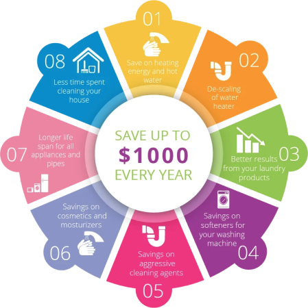 Benefits of soft water can be enjoyed, e.g. very kinder to hair or skin
